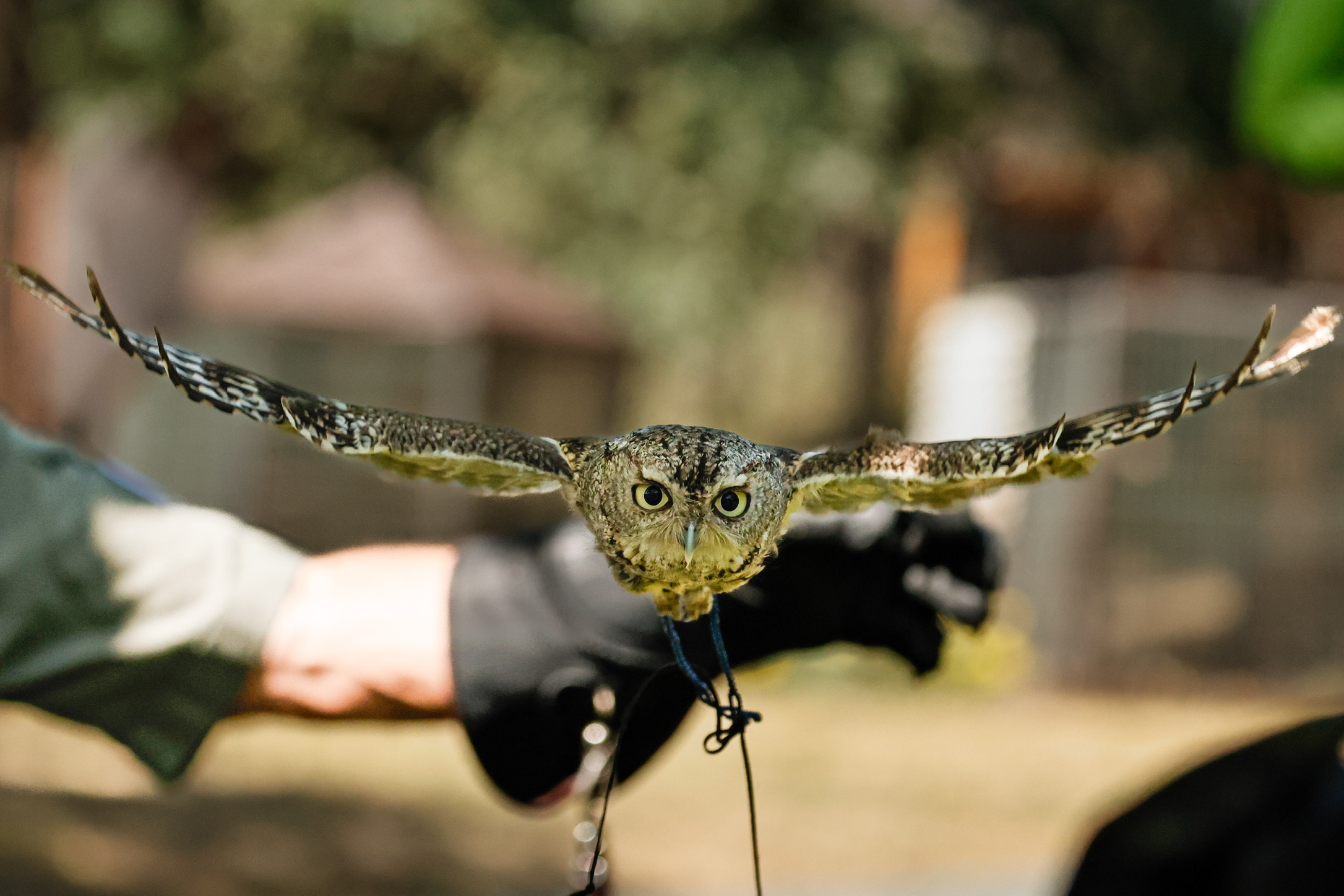 Let’s fly a falcon to the fist! Our desert falcons love to fly glove-to-glove and you will have the opportunity to interact with one of our Longwings. Get a taste of the fierce beauty of these stunning predators.